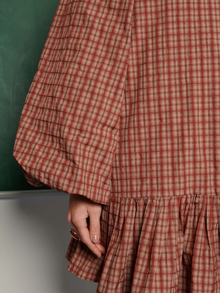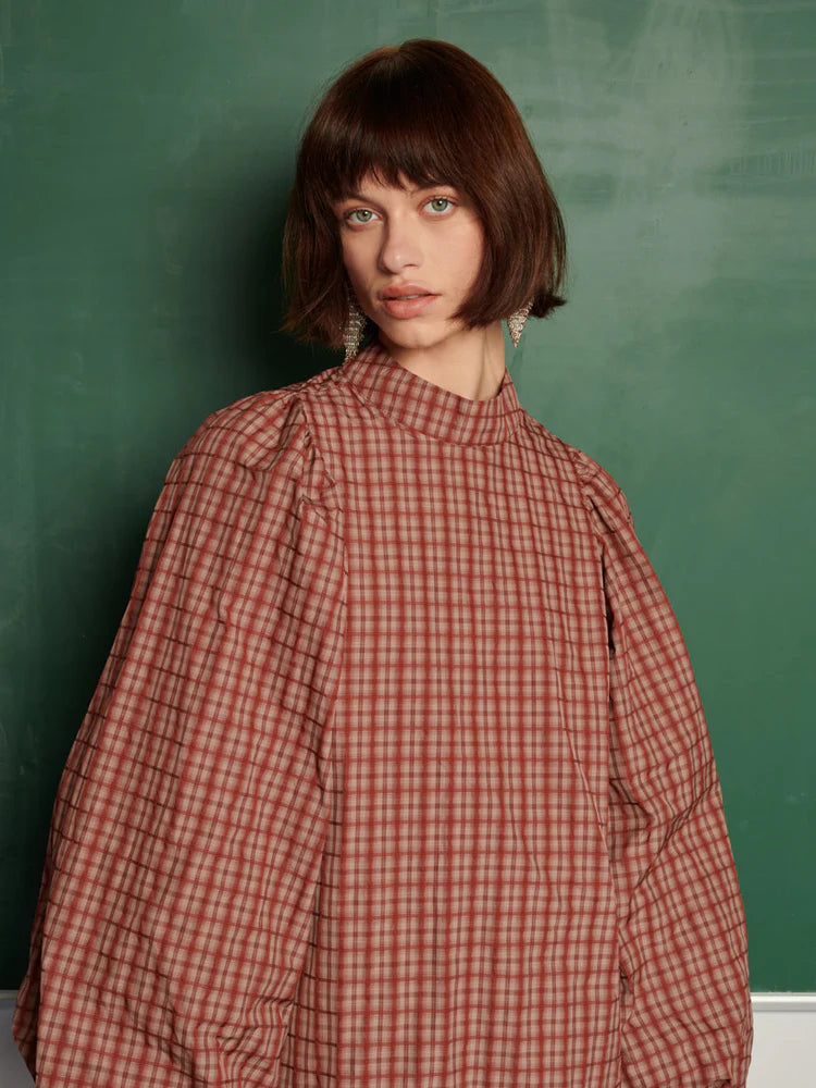 Kareli Mini Elbise, hafif dokusu ve hacimli kollarıyla zahmetsiz bir şıklık sunuyor. Tam astarlı yapısı ve yumuşak formu, romantik ve modern bir görünümle keşfetmeye davet ediyor.